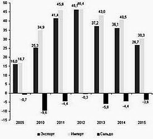 Рис. 7.Внешнеторговый оборот товарами Республики Беларусь (млрд, долларов США)