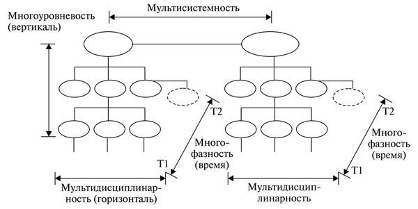 Мультисистемность – наличие в проектах определенного количества подсистем, каждая из которых характеризуется многоуровневостью, мультидисциплинарностью и многофазностью.