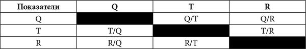 Как можно заметить, данная матрица является симметричной. На ее основе могут быть определены относительные показатели: