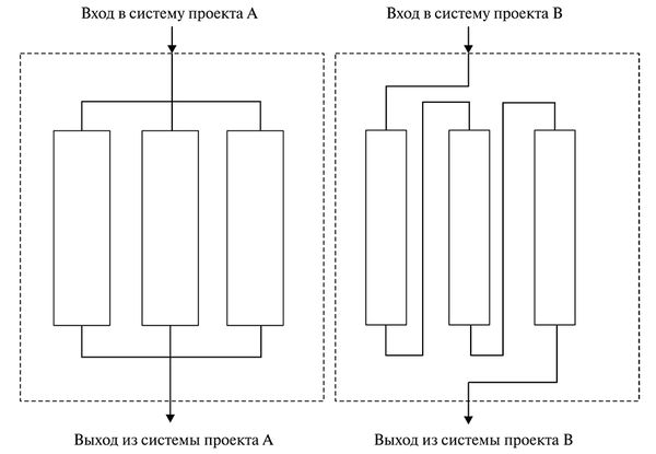 Процессы управления проектами связаны между собой и представляют систему, в которой выход (результат) одного процесса является входом (информационным условием начала) другого (рис. 5.4). Процесс преобразует вход в выход в соответствии со своим функциональным предназначением.