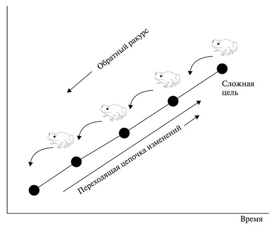 Рис. 5.10. "Прыжки лягушки" как образ структуризации во времени целей проекта [Маурик, 2002]
