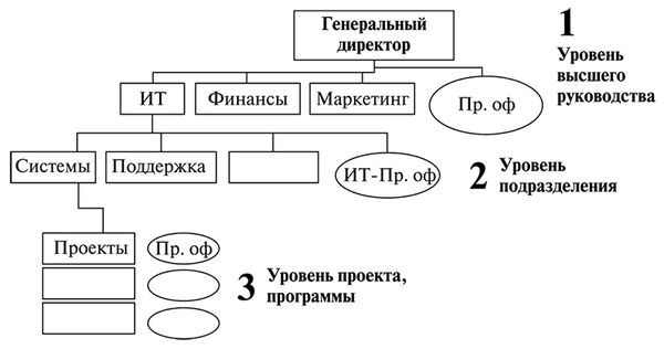 Рис. 6.3. Положение проектного офиса в организационной структуре предприятия