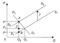 Начнем с первого варианта. Предположим, что введенный налог на каждую единицу блага составил Т руб. Допустим, что до введения налога линия спроса занимала положение D1D 1 , а линия предложения – S1S.1 Равновесная цена составляла Р1, равновесный объем продаж – Q1 (рис. 44.1).