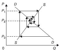 Паутинообразная модель – модель, изображающая траекторию движения к состоянию равновесия, если реакция предложения или спроса запаздывает.