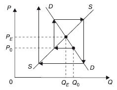Стабильность равновесия – это способность рынка, выведенного из равновесного состояния, вновь возвратиться к равновесному состоянию под воздействием только внутренних сил. В том случае, когда равновесие имеет свойство стабильности, дополнительное регулирование рынка необязательно. Когда равновесие не имеет свойства стабильности, то регулирование рынка является обязательным. Если линия спроса и предложения имеют нормальный (соответственно отрицательный и положительный) наклон, то равновесие стабильно.