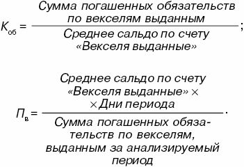 Кредиторскую задолженность можно оценить по количеству в ней расчетов с векселями. К оэффициент оборачиваемости (К об ) и продолжительность долга по выданным векселям (П в ) можно рассчитать по формулам: