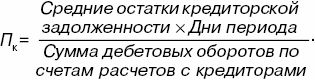 Среднюю продолжительность использования кредиторской задолженности (Пк) можно рассчитать по формуле: