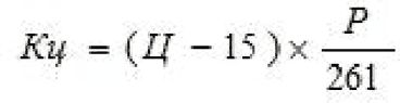 где Кц – коэффициент, характеризующий динамику мировых цен на нефть; Ц – средний за налоговый период уровень цен на нефть, выраженный в долларах США, долл.; Р – средневзвешенное значение за налоговый период курса доллара США.
