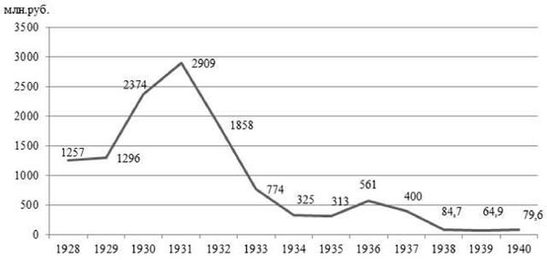 В 1930 г. происходит значительный рост импорта машин и оборудования, и в 1931 г. он составил рекордную цифру – 2,9 млрд. руб. Это объясняется потребностями первых лет индустриализации. Далее импорт значительно снижается вследствие наращивания собственного производства отраслей группы "А". Основными поставщиками оборудования и машин были американские, немецкие, английские и французские предприятия.