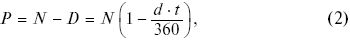 В связи с тем что расчеты с векселем осуществляют на базе финансового года, равного 360 дням, в знаменателе формулы (1) используется база – 360 дней.