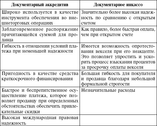 Приложение 1. Преимущества использования документарного аккредитива и документарного инкассо
