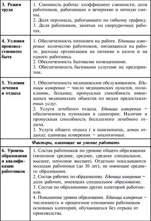 К производственным условиям относятся: механизация и автоматизация труда; состояние производственной среды; условия оплаты труда; режим труда; возможности повышения квалификации, уровня образования, профессионального и карьерного роста; состояние производственного быта.