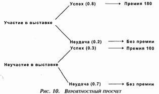 Ориентированный на получение премии директор выберет участие в выставке, поскольку оно имеет для него наивысшую ценность: 144 (180 х 0, 8) против 30 (100 х 0,3).