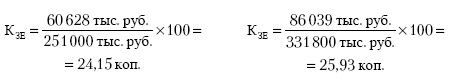 3) коэффициент отчислений по ЕСН отражает размер единого социального налога в копейках на один рубль выручки от продаж;