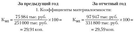 1) коэффициент материалоемкости показывает, сколько копеек составляют материальные затраты в одном рубле выручки от продаж;