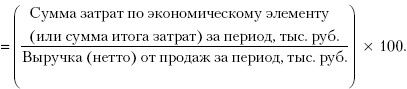 Коэффициенты затрат в копейках (или в процентах) на один рубль выручки (нетто) от продаж можно рассчитать не только по итогу затрат, но и по каждому элементу затрат: