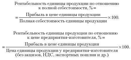 Показатели рентабельности конкретных видов продукции предпочтительно определять в расчете на единицу продукции в двух вариантах: