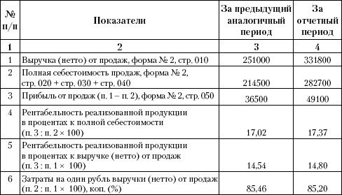 3) показатели рентабельности продаж конкретных видов продукции. Показатели рентабельности продаж можно рассчитать по данным формы № 2 "Отчет о прибылях и убытках" (табл. 10.8).