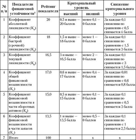 Однако в этих Методических рекомендациях отсутствует единая терминология в отношении обозначения показателей, содержится множество критериев, не приводится порядок расчета и нормативов для многих из них, а сама методика громоздка и логически не завершена, т. е. данный документ не дает конкретных рекомендаций по определению рейтинговой оценки, что затрудняет проведение на практике аналитической работы.