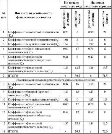Таблица 11.7. Интегральная оценка устойчивости финансового состояния организации