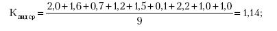 2) усредненный коэффициент лидерства рынка по всем видам продукции (Клид):