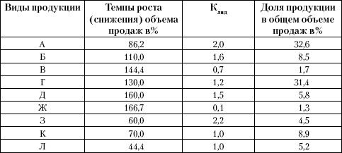 где Тi – темпы роста (снижения) объема продаж конкретного вида продукции; di– доля конкретного вида продукции в общем объеме продаж;