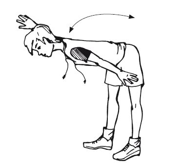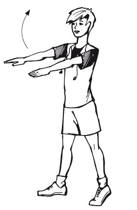 1. Круговые вращения локтями вперед и назад с одновременным сведением лопаток по 10–15 раз.