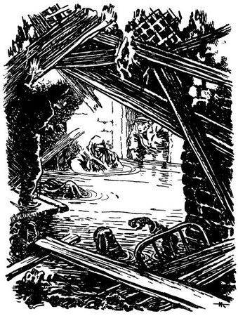 Около стены были составлены уцелевшие кровати, на них лежали скамейки, образуя помост. Забравшись на эту площадку, люди жались друг к другу.