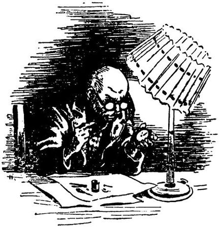Вошел помощник со старым человеком маленького роста, в громадных очках. Казалось, что эти очки мешают старику, потому что смотрел он поверх стекол, держа голову вниз.