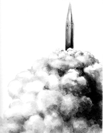 Раздался оглушительный грохот. Казалось, даже земля задрожала от мощного рёва реактивных двигателей. Ракета окуталась клубами дыма и пламени и, сперва медленно, потом всё быстрее и быстрее, унеслась в небо.