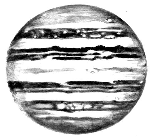 - О Юпитере известно, что он окутан плотной атмосферой из ядовитых газов. Там тоже очень холодно. Учёные думают, что только на двух планетах - Венере и Марсе - возможна жизнь. Например, точно установлено, что на Марсе есть атмосфера, похожая на земную, только более разрежённая. Вообще Марс - загадочная планета. Ещё в XVIII веке астрономы заметили на нём большие голубоватые пятна, напоминающие моря, и длинные прямые полосы, пересекающие всю планету. Полосы вызвали много споров. Некоторые думают, что это искусственные каналы, построенные жителями Марса, другие считают их глубокими трещинами, в которых скапливается вода.