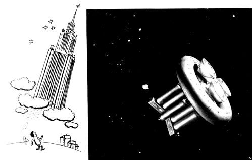 - Вероятно, можно, но ведь надо не только полететь, но и вернуться обратно. А для этого ракета должна иметь громадный запас топлива. Одна такая ракета получилась бы больше здания МГУ на Ленинских горах в Москве. С двигателями в несколько сотен миллионов лошадиных сил… Подумай только: это всё равно, что запустить в космос тридцатиэтажный дом.