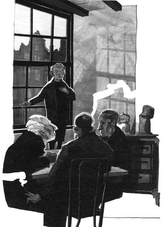 Воскресный вечер. Печка как раз прогорела, когда к нам наверх с веселым шумом пришли Рейнир Борланд и Адриан Мостерд. Они случайно встретились в сумерках на Лейденской площади. Я люблю, когда они приходят, потому что папа от них веселеет.