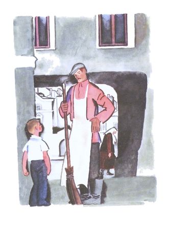 Милиционер - вот кто! Это был превосходный милиционер. Он был весь в белом. На одном боку у него был револьвер, на другом боку - сумка; потом у него был противогаз, потом - свисток, каска, белые перчатки... И на нашем доме теперь висел специальный телефон для нашего милиционера.