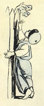 Пит ужасно испугался. Он отдёрнул руку и застыл на месте, боясь пошевелиться. Ещё немного, и он бы расплакался. Но тут открылась боковая дверь, и на тропинку вышел садовник с метлой. Он увидал среди цветов лицо Пита и очень удивился. Подойдя ближе, он заметил, что Пит чем-то взволнован, и остановился.