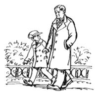 Он не стал меня уговаривать. Он прибавил шагу и крепко сжал мою руку. Мне стало даже больно. Он шел очень быстро, и я еле-еле поспевал за ним. Отчего он шел так быстро? Почему он не разговаривал со мной? Мне захотелось на него взглянуть. Я поднял голову. У него было очень серьезное и грустное лицо.