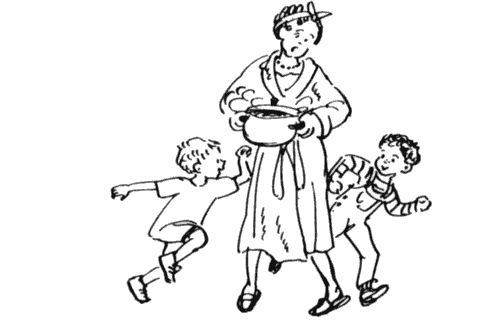 - Дети, не вертитесь под ногами! Осторожно, у меня горячая кастрюля!