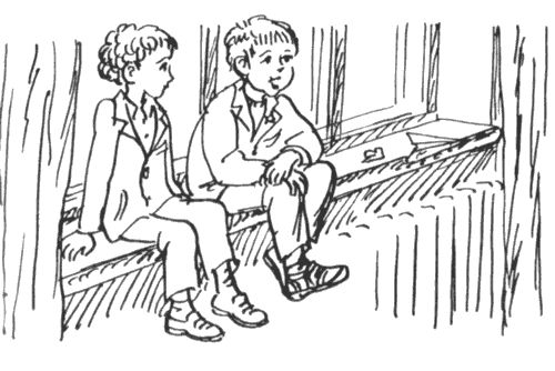 Один раз мы с Мишкой вошли в зал, где у нас бывают уроки пения. Борис Сергеевич сидел за своим роялем и что-то играл потихоньку. Мы с Мишкой сели на подоконник и не стали ему мешать, да он нас и не заметил вовсе, а продолжал себе играть, и из-под пальцев у него очень быстро выскакивали разные звуки. Они разбрызгивались, и получалось что-то очень приветливое и радостное. Мне очень понравилось, и я бы мог долго так сидеть и слушать, но Борис Сергеевич скоро перестал играть. Он закрыл крышку рояля, и увидел нас, и весело сказал: