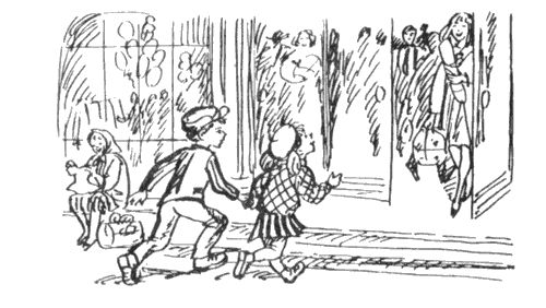 Мы взялись с Аленкой за руки и побежали как сумасшедшие в большой магазин. Там была целая толпа народу и в самой середине стояли сделанные из чего-то блестящего мужчина и женщина, огромные, под потолок, и, хотя они были ненастоящие, они хлопали глазами и шевелили нижними губами, как будто говорят. Мужчина кричал: