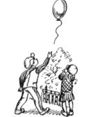 Но Аленка от них убежала, а я - за ней, и мы наконец очутились возле кваса. У меня были деньги на завтрак, и мы поэтому с Аленкой выпили по две большие кружки, и у Аленки живот сразу стал как футбольный мяч, а у меня все время шибало в нос и кололо в носу иголочками. Здорово, прямо первый сорт, и когда мы снова побежали, то я услышал, как квас во мне булькает. И мы захотели домой и выбежали на улицу. Там было еще веселей, и у самого входа стояла женщина и продавала воздушные шарики.