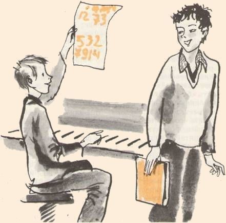 Я снова открыл пианино и, поглядывая в свой листок, начал вычислять, а потом нажимать нужные клавиши. Но почему-то пианино издавало набор каких-то непонятных звуков. Моя свежая мелодия куда-то исчезла!
