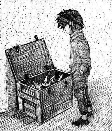 В комнате, где жил Юхан, стоит ящик с игрушками. Когда Эльвис навещает бабушку с дедушкой, бабушка отводит его в комнату Юхана и приподнимает крышку на ящике с игрушками. Эльвису разрешают разглядывать игрушки, но не разрешают их трогать.