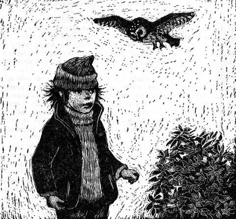 Кто-то взялся за ручку двери, и сова взлетела под потолок. Дверь открылась, в неё просунулась голова, и сова камнем ринулась на эту голову, да ещё с таким грозным криком, что пришелец без оглядки бежал.