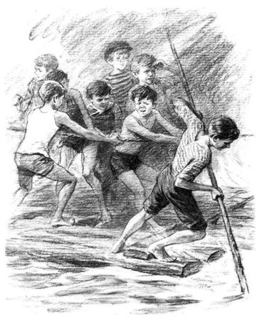 После одной из таких стычек побитые, исцарапанные полыновские мальчишки понуро пришли к реке, разделись и, потирая ссадины и синяки, вошли в воду. Все молчали, сердито сопели и старались не глядеть друг на друга. Было и обидно, и больно, особенно Тимошке и Матюхе: у Тимошки под глазом набухал зловещий фиолетовый "фонарь", а у Матюхи от правого уха к подбородку шла красная кровоточащая ссадина.