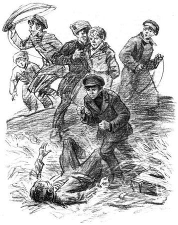 Окруженный городовыми, отец стоял около саней. В них Климка увидел генерала. А вокруг в быстро наступавших сумерках густела толпа. На крыльце кабака Климка заметил Шурку, его отца и еще несколько подвыпивших рабочих.