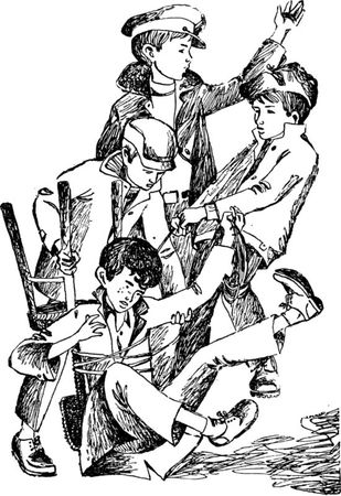 "Что же делать? - рассуждал я. - Не пойти ли в разведку? Но тогда мы наверняка опоздаем на электричку. Так, так, так… Где же выход? Может быть, мне одному остаться, а всем другим мчаться на станцию?"