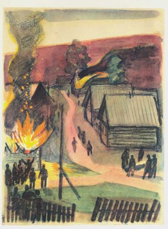 Над избами занялось пламя. Столбом повалил чёрный дым.
