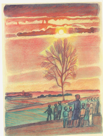 Ксения Герасимовна сбежала вниз и подвела ребят к могильному кургану за колхозной ригой.