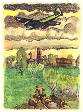 Дети распластались на земле, где кто стоял. Им отчётливо видны были пауки свастик на крыльях и чёрные кресты на фюзеляже.