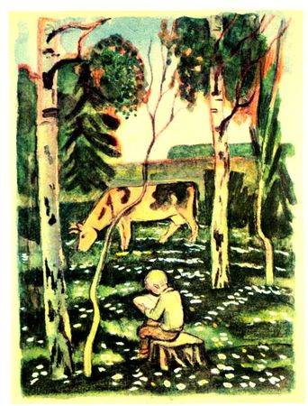 Пас корову Юра. Он не всегда следовал наставлениям матери, где можно было пасти, а где нельзя. Случались среди запретных мест лесные лужки и вырубки с пышным разнотравьем, сухие болота с сочнейшей косчей травой, куда не пробраться с косилками и без выгоды посылать малочисленных колхозных косцов, так что же - задаром пропадать богатым кормам? И Юра гнал туда Буянку. Он был на редкость и на радость послушный мальчик, но только до тех пор, пока видел разумность тех или иных запретов.
